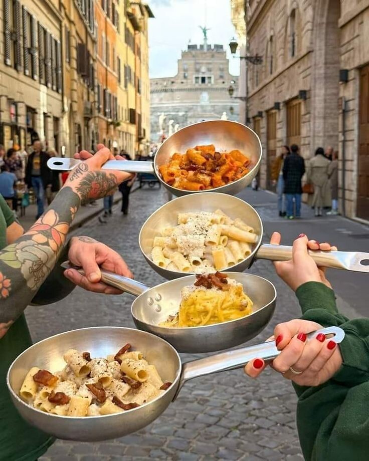 В Вечном городе есть 4 культовые пасты, которые должен попробовать каждый! Рассказываем о главных звездах римской кухни 🇮🇹 1. Carbonara (Карбонара) 🥓 • Спагетти с соусом из яиц, пекорино романо, гуанчале и черного перца • Никаких сливок! Только желтки создают кремовую текстуру • Легенда: придумана угольщиками (carbonai), отсюда и название 2. Cacio e Pepe (Качо э пепе) 🧀 • Всего 3 ингредиента: паста, сыр пекорино и черный перец • Секрет в технике: часть воды от пасты создает соус с сыром • Любимое блюдо римских пастухов 3. Amatriciana (Аматричана) 🍅 • Родом из городка Аматриче • В составе: томаты, гуанчале, пекорино и красный перец • Изначально готовилась без томатов - pasta alla gricia 4. Alla Gricia (Алла Грича) 🐷 • "Белая аматричана" - без томатов • Гуанчале, пекорино, черный перец • Названа в честь поваров из швейцарского кантона Гриджони 🤔 Интересные факты: • Все эти блюда появились не раньше 18-19 века • Гуанчале - не бекон, а сыровяленые свиные щёки • В Риме пасту ча