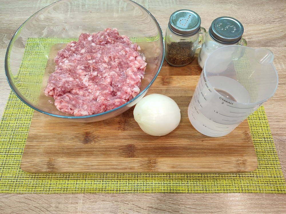 Больше рецептов приготовления смотрите на Овкусе.ру фарша 450 гр лука 200 гр холодной воды 150 мл Соль, перец по вкусу Тесто: муки 450 гр (+/-) яйца 2 воды 100 мл соли 2/3 ч. л.
