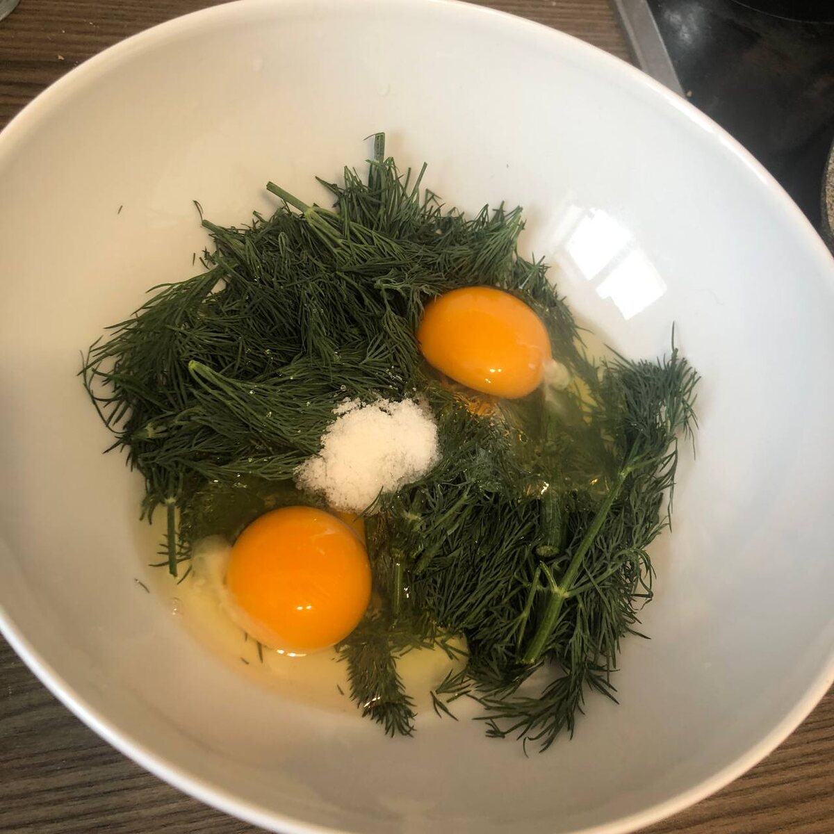 Это один из моих любимых рецептов. Блюдо яркое, необычное, очень вкусное и простое в исполнении. Нам понадобится для клёцок: 2 яйца 1-2 пучка укропа 1 ч.л. соли 200гр муки Ингредиенты для аккомпанемента к клёцкам: лук 2 кг 1 уп. сливочного масла 180гр подсолнечное масло сахар Ингредиенты для соуса 200 мл сметана или кефир 2-3 зубчика чеснока 1 ст.л. горчицы веточка укропа соль, перец Яйца, укроп и соль высыпаем в одну миску и доводим блендером до единой зелёной консинстенции. Блендерить придётся минуты 3-5, чтобы минимизировать количество зеленых комочков. Добавляем в зеленую массу холодной кипяченой\фильтрованной воды 100 мл. Перемешиваем. Добавляем муки, как на пельменное тесто и вымешиваем. Месим долго до плотного тугого комочка. При необходимости добавляем еще муки, чтобы была однородная масса. В момент данной готовки я торопилась к приходу свёкров и немного бы еще домесить на фото. После промешивания, комочек зелёного теста кладём в пакет и морозилку, чтобы тесто прихватилось