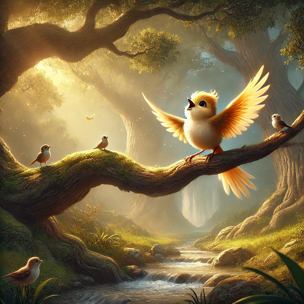 **Сказка о Маленькой Птичке и Песне Ветра** 🌬️🐦🍃 В одном чудесном лесу, где деревья шептали друг другу древние секреты, жила маленькая птичка по имени Вита. Она была самой маленькой из всех птиц в лесу, и её перышки блестели золотом на солнце. Но, несмотря на её красоту, Вита редко пела. Она стеснялась своего голоса, считая его слишком тихим и не таким мелодичным, как у других птиц. Каждое утро все птицы леса встречали рассвет громкими песнями, которые эхом разносились по лесу. Вита всегда слушала их из своей маленькой гнёздышки, мечтая, что однажды её голос тоже зазвучит так же громко и красиво. Однажды, когда Вита сидела на ветке и тихо напевала себе под нос, к ней прилетел старый мудрый ворон. Он долгое время наблюдал за маленькой птичкой и, наконец, сказал: "Не стесняйся своего голоса, Вита. В мире есть место для каждого звука, даже самого тихого." Но Вита не была уверена. "Мой голос такой слабый, его никто не услышит," — вздохнула она. Ворон улыбнулся и сказал: "Позволь ветру