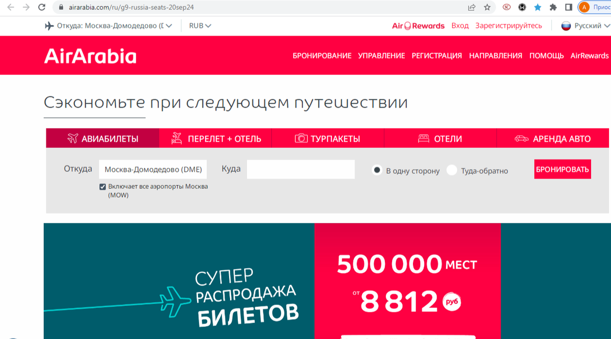 Как зарегистрироваться на рейс авиа компании Air Arabia?