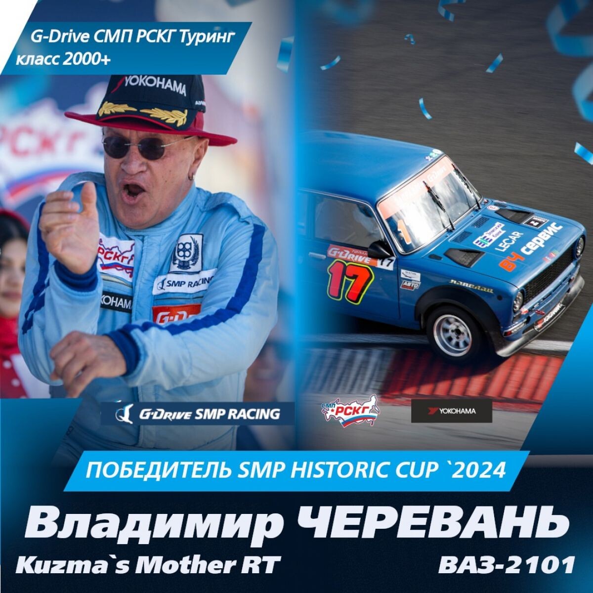 Орловский 64-летний гонщик Владимир Черевань в третий раз подряд занял первое место в классе 2000+, старшей категории исторического зачета SMP Historic Cup. Снова орловец «гонял» на темно-голубой «копейке». Черевань финишировал первым во всех 5-ти квалификациях и в 9-ти из 10-ти гонок сезона. В последней гонке авто орловца забарахлило и ему не удалось установить рекорд. Кроме того, Владимир Черевань успешно выступил в классе "Туринг-лайт". В зависимости от рассмотрения результатов апелляции по дисквалификации Петра Плотникова и Николая Карамышева в Грозном Черевань может занять второе или третье место. Орловец стал первым за долгое время гонщиком, которому за один сезон удалось занять призовые места сразу в двух классах.