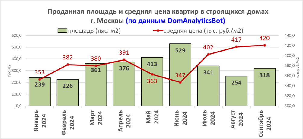 Продажи в новостройках Москвы и Санкт-Петербурга за сентябрь 2024 г.
