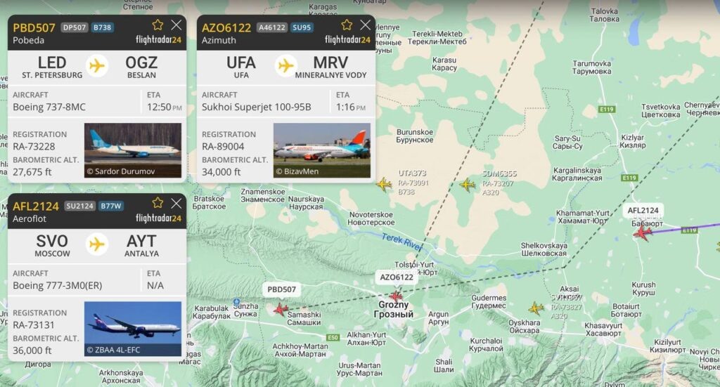 По данным Telegram-канала «Авиаторщина», об угрозах доложил наземным службам экипаж Boeing 737 авиакомпании «Победа», летевшего из Санкт-Петербурга и заходившего на посадку в аэропорт Владикавказа. Затем о таком же запугивании сообщили пилоты рейса «Азимута», следовавшего из Уфы в Минводы, а также экипаж Boeing 777 «Аэрофлота», выполнявший рейс из Москвы в Анталью.