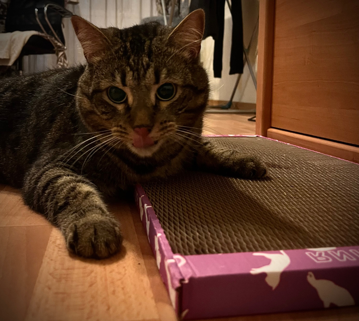 Недавно приобрели когтеточку-лежанку от «Сота-Макси» Она просто замечательная! Кот начал сразу атаковать Целый день не отходит от неё И ему зашло, и мне понравилось тем, что мусор не оставляет Советую! Ссылку оставляю ниже