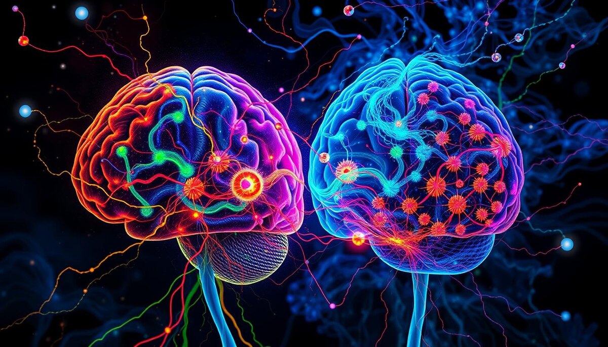Например, исследования показали, что во время галлюцинаций активность в аудиторной коре увеличивается. Это область мозга, отвечающая за звуки. Активность также наблюдается в областях, связанных с речью и языком. Это может указывать на нарушение баланса между этими областями, что приводит к ложным звукам.