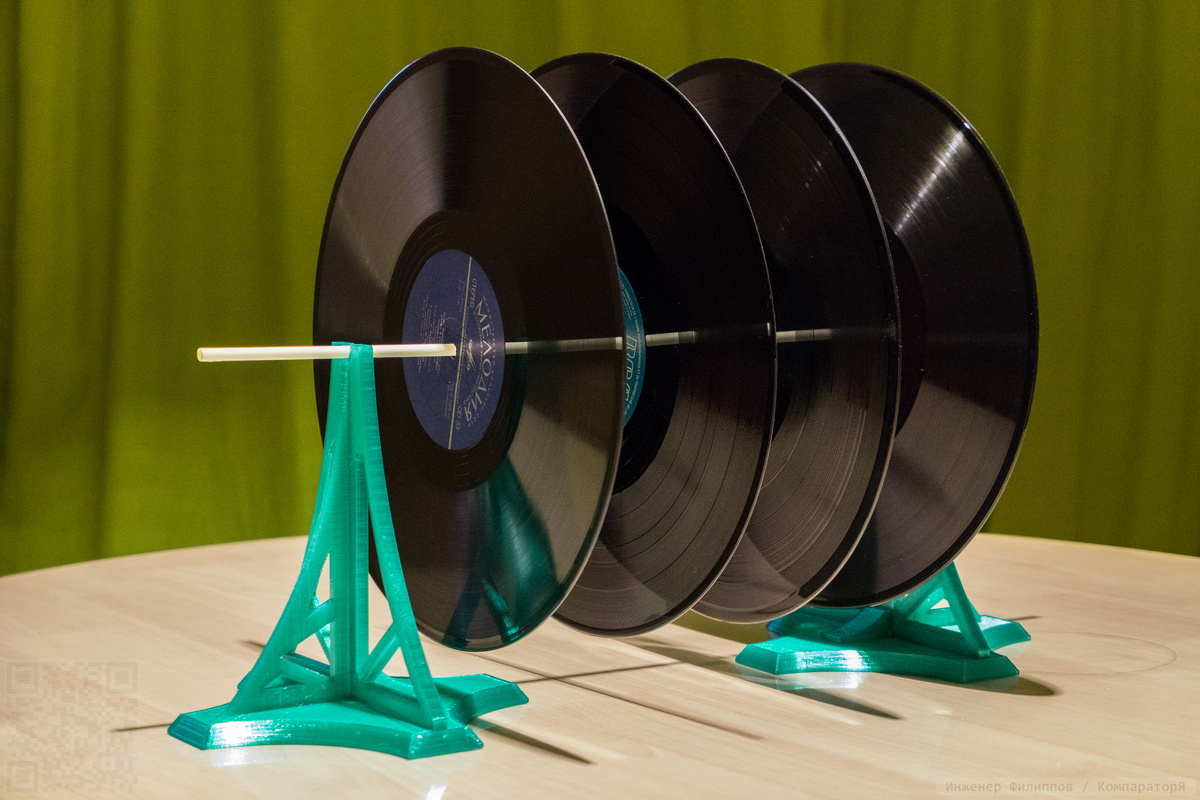 Вот тут я уже писал о китайском приспособлении для мытья виниловых пластинок, которое прекрасно себя зарекомендовало. Однако хорошо было бы дополнить его и другой "приспособой" - подставкой для сушки только что отмытых дисков. Устройство это совсем не хитрое, поэтому я решил его спроектировать самостоятельно, с тем, чтобы потом напечатать на 3D-принтере. Вот что у меня получилось: