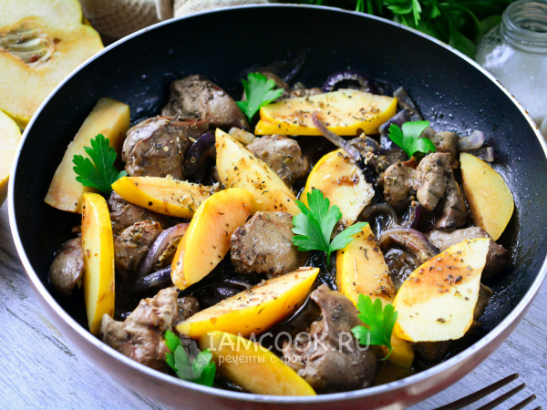 Дорогие хозяюшки, этот рецепт - настоящая находка для тех, кто любит побаловать домашних чем-то необычным! Сегодня мы приготовим куриную печень с айвой. Да-да, именно с айвой! Этот осенний фрукт творит настоящие чудеса: после тепловой обработки он раскрывается совершенно по-новому и придает блюду такой аромат - пальчики оближешь! А уж когда добавим бальзамического соуса... М-м-м! Айву выбирайте желтую, но еще твердую - такая лучше держит форму. 📝ПРИГОТОВЛЕНИЕ: 1. Первым делом займемся айвой. Помоем её хорошенько, разрежем на симпатичные дольки (не слишком мелко!), уберем сердцевинку. Растопим в сковородке сливочное масло и обжарим айву 3-4 минутки, переворачивая время от времени. Как только зарумянится - откладываем в сторонку. 2. В той же сковородке (чтобы все ароматы сохранить!) наливаем растительное масло. Как разогреется - бросаем нарезанный полукольцами лучок. Следом отправляем печеночку (только не забудьте её помыть и от пленочек освободить!). Режем не слишком мелко - чтобы сочн