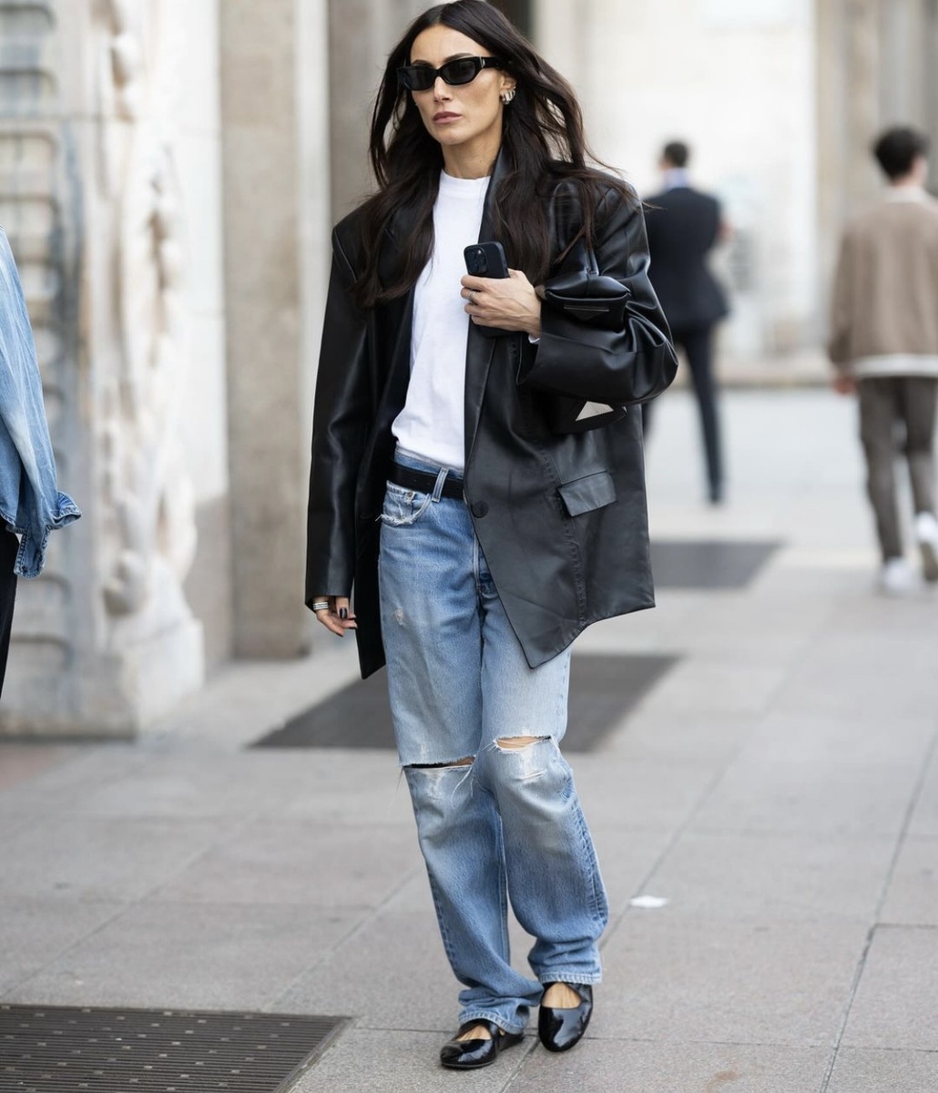 Это только кажется , что весь деним одинаков. Модницы в сентябре и октябре гуляли по Парижу ( и по подиуму) в таком разнообразии , что голова кругом! Из показа Дома Chanel: вернулись джинсы, расшитые бисером или стразами. А линия талии спустилась до бедер. Но всем ли идет низкая посадка, делающая ноги короче? С показов от модных критиков: так они видят актуальные джинсы. Или предлагают носить вот так! Вернулся главный тренд- белая блуза плюс джинсы. Второе важное: кожаная куртка разнообразного кроя. Как видим, сам крой джинс или прямой и широкий, или просто оверсайз. Я же ратую за клеш, который стройнит, а не превращает вас в Гавроша. Хотя чисто мужской вариант, который имеет термин " его подружка", вполне жизнеспособен. И все же джинсы этого сезона поражают разнообразием подходов - тут важно сочетание с обувью, сумками и топами. Ну и улыбка приветствуется!