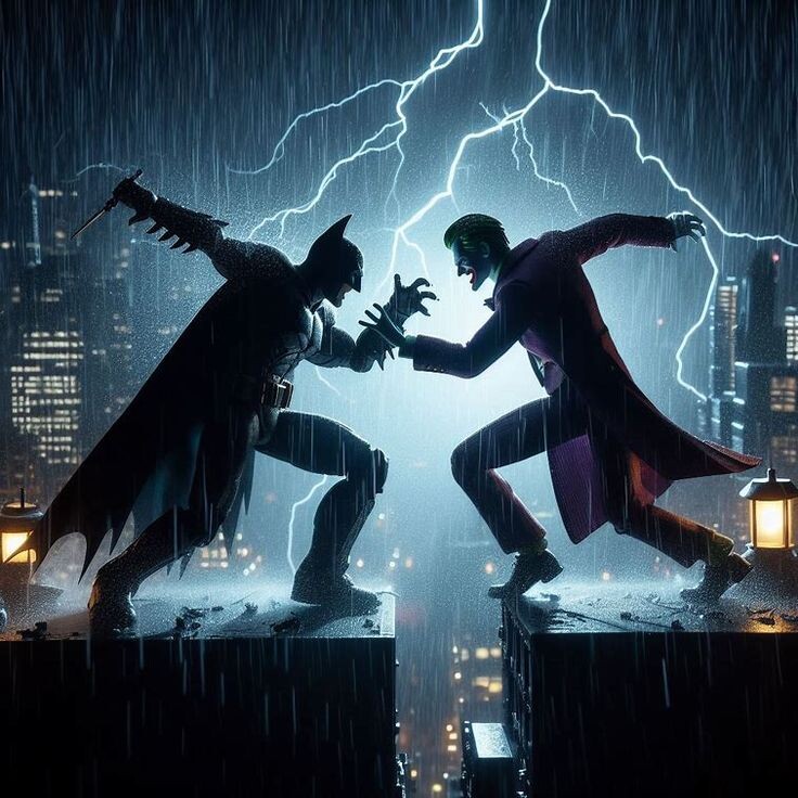 Знаете, говорят, что у каждой монеты две стороны. Вот и у Готэма есть две стороны - одна купается в сиянии прожекторов, другая же погружена в вечный мрак. На грани этих миров, словно на лезвии бритвы, балансируют они - Бэтмен и Джокер. Их противостояние уже давно переросло рамки обычной борьбы добра и зла. Это поединок двух идей, двух стихий, которые, сталкиваясь, порождают молнии. Бэтмен - это непоколебимая скала, символ порядка в мире, поглощенном хаосом. Его кулаки карают преступность, а его моральный кодекс не зыблется даже перед лицом самых страшных испытаний. Он верит в закон, в справедливость, в силу человеческого духа. Но у каждого света есть своя тень. И тень Бэтмена - это Джокер, хохочущий безумец. Джокер плевать хотел на власть и деньги. Ему нужно другое - разбить все наши красивые иллюзии вдребезги, показать, как хрупок наш мир, и как близко к поверхности кипит безумие. Говорят, без тьмы не увидеть света. Вот и Джокер стал для Бэтмена своего рода экстремальным тренажером. К