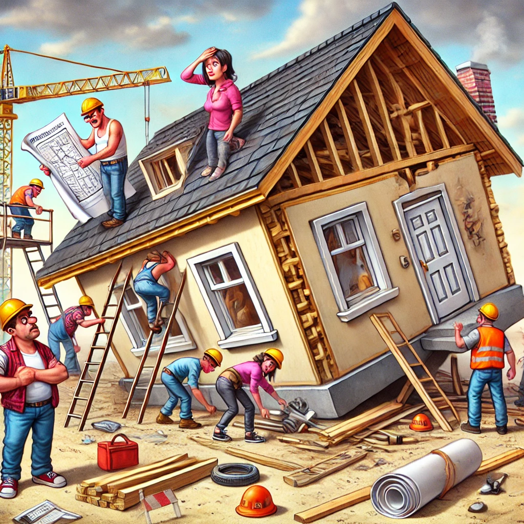 Если вы собираетесь построить дом, то, вероятно, уже начитались кучу статей, насмотрелись шоу про "стройку мечты" и думаете: "Я всё понял, теперь можно начинать!" Но вот что я вам скажу: всё, что вы думаете о строительстве дома, — неправда!. Сегодня я разоблачу 6 самых популярных мифов, которые могут влететь вам в копеечку. Да, конечно, план — это волшебное слово. Но помните, друзья: даже самый детализированный план — это просто бумажка, если его пытается воплотить в жизнь реальная стройка. В реальности всё может пойти наперекосяк. Забетонировали фундамент? Отлично, но тут внезапно решили, что хотите ещё и бассейн. И вот план уже нужно менять. Или, что ещё лучше, строители посмотрели на ваш план, потом на облака и решили: "Сегодня будет ливень, ну его к чёрту!" Правда: Стройка — это не стабильный процесс. Даже с планом в руках готовьтесь к постоянным изменениям, корректировкам и погодным сюрпризам. "Да мы сэкономим на подрядчиках, на материалах, на времени..." — начнёт кто-то и тут же