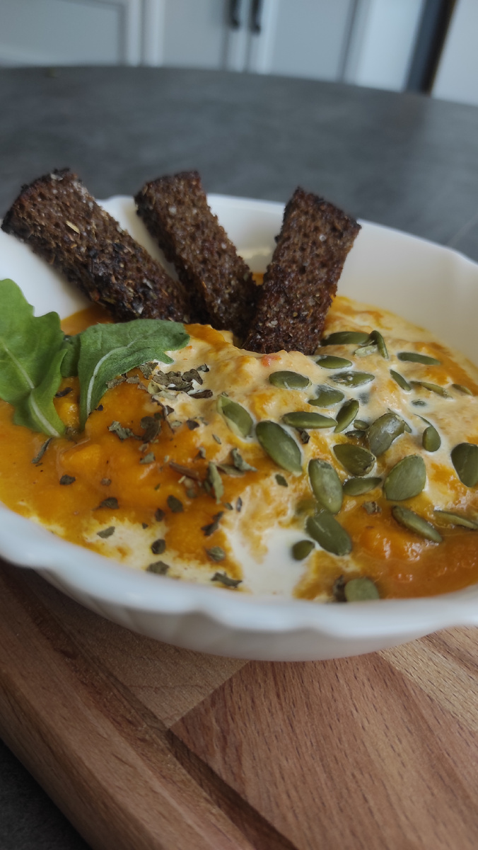 Рецепт который довёл меня до слёз, но... Я не пожалела, что попробовала! 〰️ Тыкву очищаем, удаляем семена и нарезаем небольшим кубиком 〰️ Лук, морковь чистим и нарезаем на несколько частей (можно вообще не резать, но так быстрее готовится) 〰️ В кастрюлю вливаем 50мл растительного масла и 50 гр.сливочного 〰️ Обжариваем лук и морковь до небольшой румяности 〰️Добавляем тыкву и обжариваем минут 5-7 〰️Солим, добавляем стакан воды и стакан молока. Даём закипеть, убавляем огонь и накрываем крышкой на 40 минут. 〰️ Добавляем перец, немного чеснока (по желанию) и перебиваем блендером. ✔️По желанию можно добавить сливки, мускатный орех, базилик (мне очень нравится именно с мускатным орехом) 〰️ Подавать с греками и тыквенными семечками. ✅Обязательно сохрани рецепт, чтобы попробовать. И подписывайся на канал. (а почему этот рецепт довёл меня до слез, можно узнать из предыдущего рилс в инстаграм @puchek.petrushki ). _______________ Поддержать автора канала можно: СБ 2202202345968998 Б