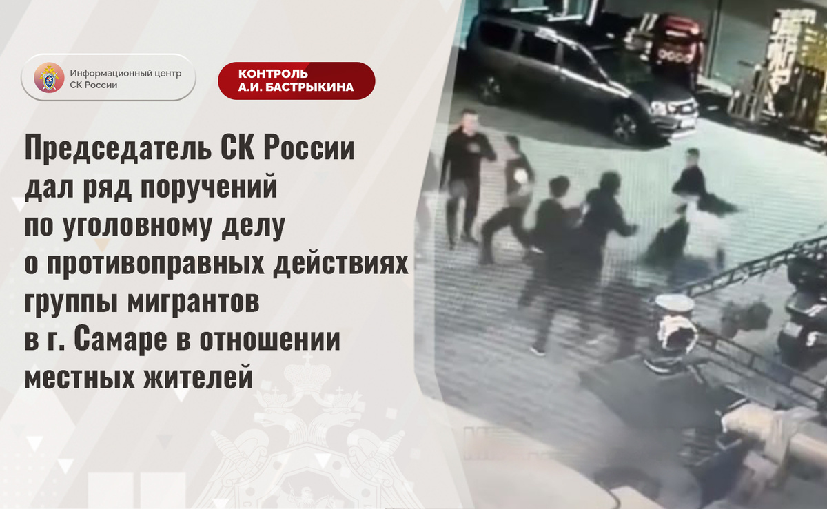 Председатель СК России дал ряд поручений по уголовному делу о противоправных действиях группы мигрантов в г. Самаре в отношении местных жителей Внимание Председателя СК России А.И. Бастрыкина обращено на публикации в социальных сетях о длительном непривлечении к уголовной ответственности группы мигрантов в городе Самаре в связи с совершением ими противоправных действий в отношении местных жителей. В сентябре текущего года не менее пяти фигурантов без причины жестоко избили троих мужчин на территории развлекательного заведения. Одному из пострадавших потребовалась медицинская помощь, у него диагностированы многочисленные повреждения. В региональном следственном управлении по данному факту возбуждено уголовное дело. Председатель Следственного комитета Российской Федерации Александр Иванович Бастрыкин поручил и.о. руководителя СУ СК России по Самарской области Максиму Сергеевичу Козлову доложить о причинах допущенной по уголовному делу волокиты. Кроме того, А.И. Бастрыкин поручил М.С. Коз