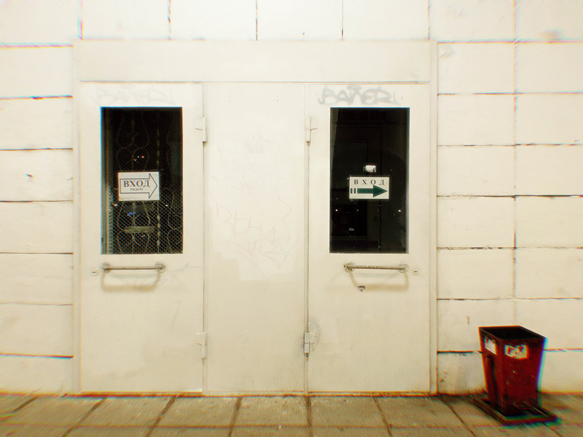 Два года назад был в Архангельске и там встретил навигационную мексиканскую дуэль. Ну лааадно, мексиканская дуэль была бы если бы двери указывали бы друг на дружку, тут наверное больше подходит — чур не я вход! И не я вход!