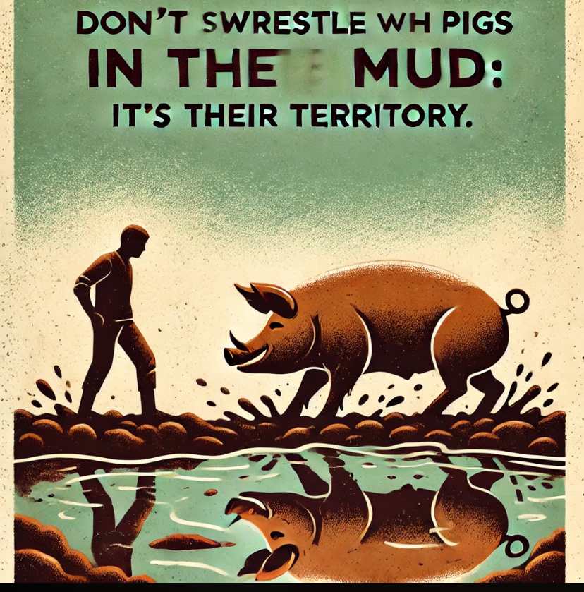 Давайте разберем, что на самом деле скрывается за этой метафорой, и как она может помочь вам сохранять спокойствие и продуктивность, не увязнув в «грязи» чужих проблем и провокаций.
