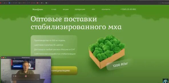 К нам обратилась компания, которая занимается реализацией стабилизированного мха. Учитывая редкость этого типа бизнеса, мы настроили для заказчика рекламную кампанию в Яндекс Директ и создали под нее продающую посадочную страницу. И вот что из этого вышло. Первое, что мы сделали — создали промежуточный лендинг, где, кроме основных дизайнерских решений, также мы также проработали продающую часть: Кроме того, параллельно с лендингом, мы разрабатываем полноценный многостраничный сайт, который заточен в основном под SEO-продвижение. Для продвижения нашей посадочной страницы была использована реклама в Яндекс Директ. Мы создали несколько групп объявлений и для каждой из них составили по несколько ключевых запросов и форматов рекламы — например, «Декоративный мох оптом от 1200 руб/кг. Звоните! — Срок годности 8-10 лет». Также планируется тестирование групп ретаргетинга через Look-alike аудиторию. При этом, мы формируем общую базу ретаргетинга, т.к. собираемся работать по этой кампании в долг