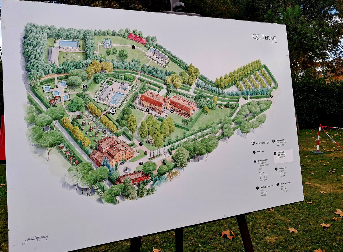 На СПА-отель QC Termeroma в городке Фьюмичино под Римом я положила глаз очень давно, несколько лет назад, и всё лелеяла мысль однажды переночевать тут в последнюю ночь перед отъездом: удобно, около аэропорта, заодно покайфовать в СПА после насыщенных каникул. Но, увы, после пандемии отель стал не просто дорогим, а очень дорогим: за ночь (с включенным посещением СПА) за номер на двоих просили порядка 400 евро. Увы, мой финансовый болевой порог недостаточно высок, для меня это перебор🤷♀️
