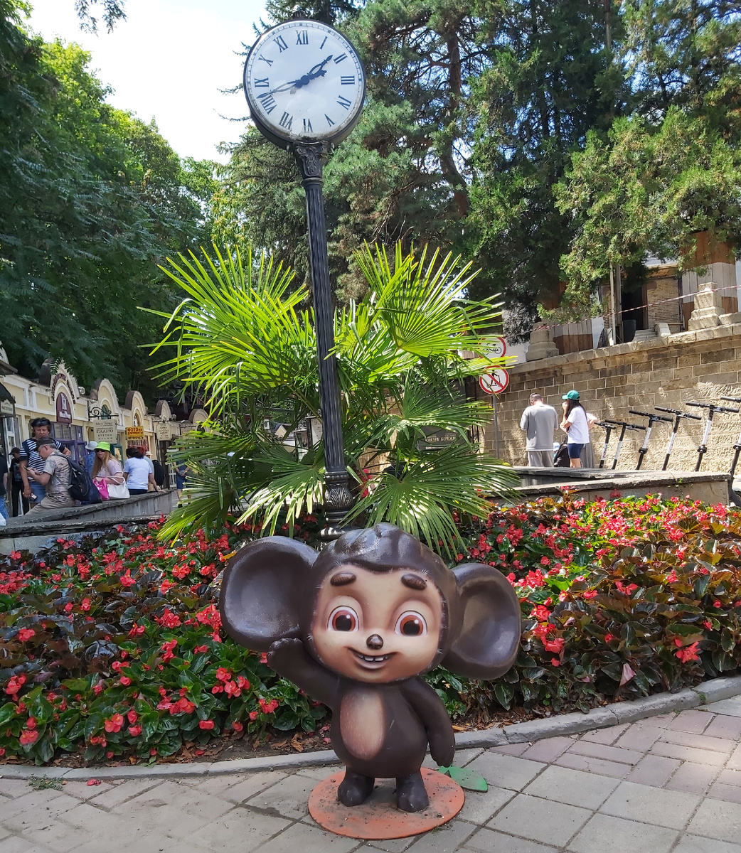 После выхода фильма Кисловодск почти официально стал городом Чебурашки. Сцены снимались в разных городах КМВ- и в Пятигорске, и в Ессентуках, но одна из самых запоминающихся, та, где по улице катились апельсины, была снята в Кисловодске. Сейчас в городе можно увидеть Чебурашек в самых разных вариациях-игрушки, ростовые куклы, с которыми можно сфотографироваться, а на той самой "улице с апельсинами" (проспект Карла Маркса) установили фигурки героя одного из самых популярных фильмов последнего времени. Начинается это улица сразу от ЖД вокзала, и ведет к Курортному бульвару. И первым встречает приехавших вот такой забавный зверек А дальше их можно увидеть везде-Чебурашки и выглядывают из-за угла и дразнятся и просто отдыхают ) А на Курортном бульваре Чебурашки-работяги перевозят апельсины Вот такая новая достопримечательность, поднимающая настроение отдыхающим! А в следующей статье расскажу еще об одном месте для прогулок, которое точно нужно посмотреть-проспекте Ленина.