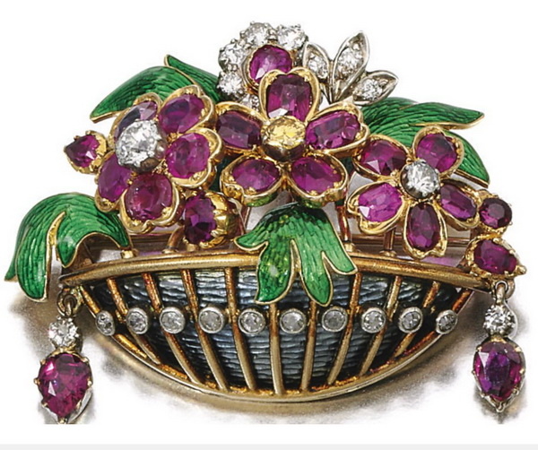 Итальянским словом giardinetto (маленький сад, садик) называют ювелирные украшения в виде корзины с цветами, или деревца в кашпо, или просто вазон с букетом. Как правило, это броши, но бывают и кулоны, подвески, серьги и даже кольца в стиле giardinetto. Стиль giardinetto позволяет создавать очень интересные ювелирные композиции с неожиданными сочетаниями драгоценных камней. А фантазия ювелиров, изобретающих все новые дизайны в этом направлении, поистине неисчерпаема. Брошь giardinetto с эмалью рубинами и бриллиантами, начало ХХ века. Брошь giardinetto с вазой из горного хрусталя, резными листьями из перидота и цветами из сапфиров, рубинов и бриллиантов. Набор украшений giardinetto из серебра со стеклянными вставками, имитирующими драгоценные камни, VIII век. Брошь giardinetto с бирюзой, сапфирами и бриллиантами, Bulgari. Брошь giardinetto с горным хрусталем, лазуритом, дымчатым и розовым кварцем, аметистом, халцедоном, кораллом, рубинами, изумрудами, бирюзой и бриллиантами, Santagosti