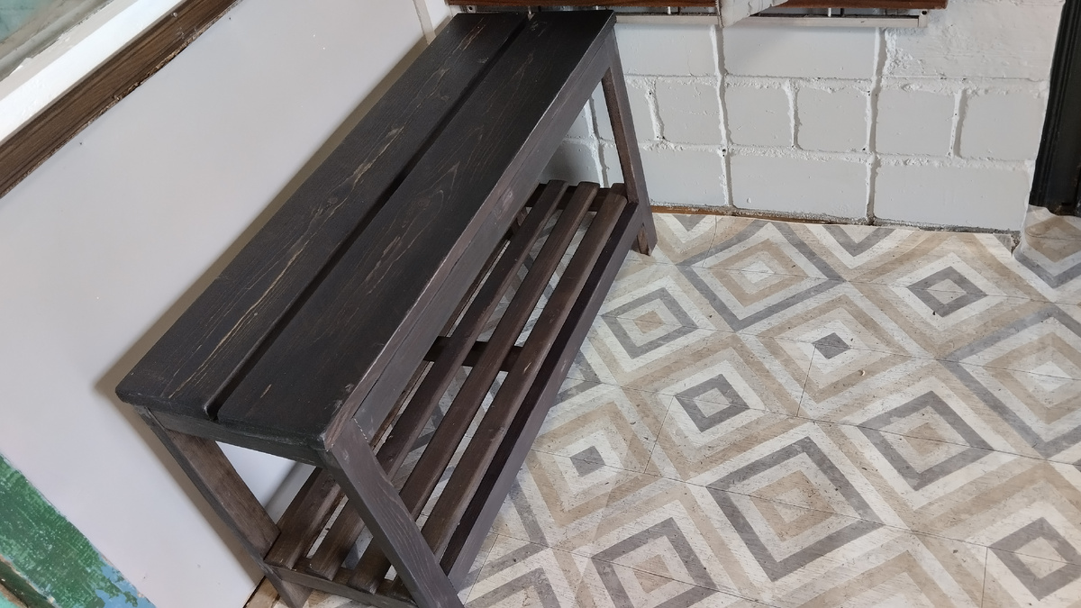 Во всех смыслах страшно: страшно и в начале, и в конце, страшно попробовать, страшно смотреть на результат. Да, пока моя мебель - не образец красоты и изящества)) Но, не попробуешь, не научишься. Вообще, немного обидно сейчас, что в детстве нам на уроках труда выбора не давали. Девочка? Готовка, шитьё, вязание. Мальчик? Скворечник, подсвечник, табурет. Может, я в детстве тоже хотела табурет? Получилось, как получилось. Свой первый табурет я соорудила в этом году - начинать никогда не поздно. Кстати, это был не табурет, а Я настолько не верила в то, что что-то получится, что процесс не фотографировала, только результат. Придётся вам поверить мне на слово. Материал называется "что не жалко" - ёлка, брус 50х25 и неструганая доска. Сушила, стругала, шлифовала. Тонировала морилкой на водной основе, покрывала акриловым лаком-пропиткой. Собрала просто на саморезы в торец. Прям поверила в себя. Поняла одну важную вещь - эргономика важна)) Скамейка получилась высокой и жутко неудобной - буду пе