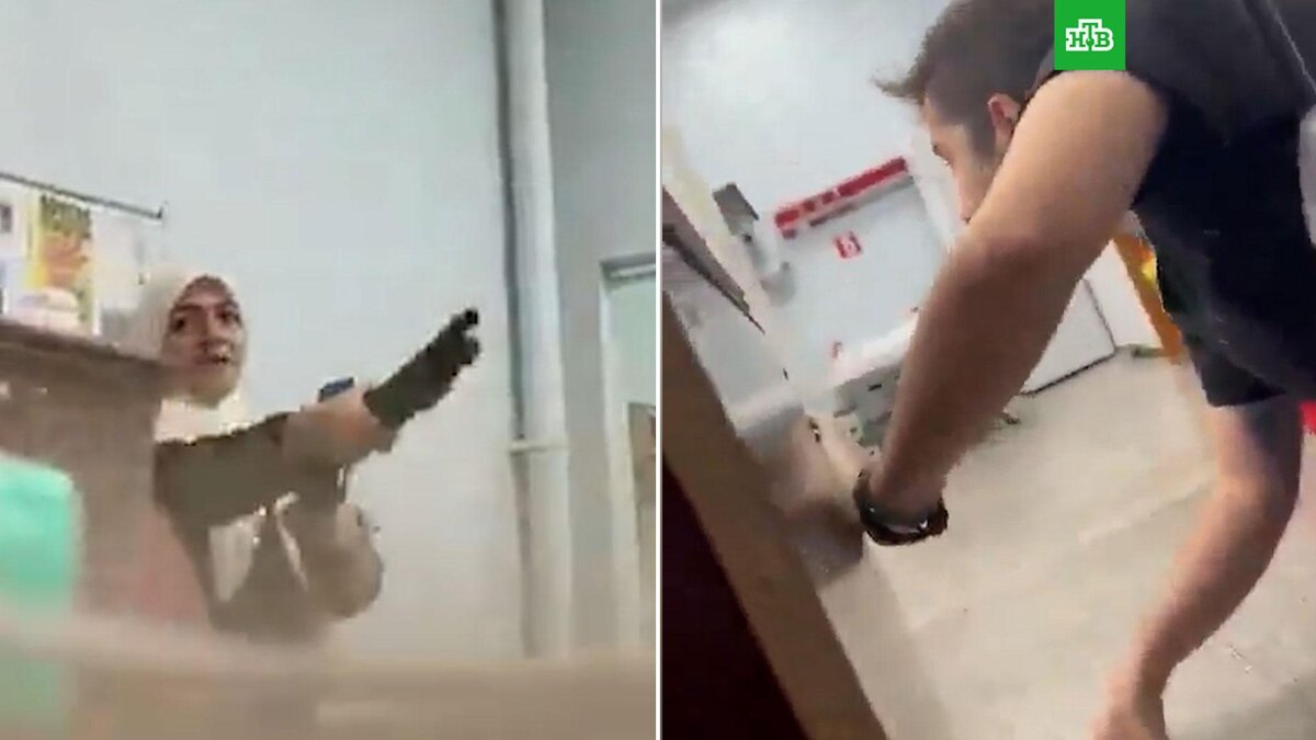 [ Смотреть видео на сайте НТВ ] В турецком Кахраманмараше операцию по освобождению заложников пришлось проводить в роддоме. Женщина с дробовиком ворвалась в роддом в турецком Кахраманмараше. Она кричала и угрожала, взяв в заложники персонал родильного отделения. Никаких внятных требований при этом она не излагала. Несколько медиков умудрились снять происходящее на мобильный телефон. На место происшествия прибыли полицейские, которые смогли обезвредить нападавшую, никто не пострадал. Задержана 45-летняя женщина. По информации местных СМИ, сейчас проверяется версия о том, что она страдает психическими заболеваниями. По материалам: karar.com. [ Смотреть видео на сайте НТВ ]