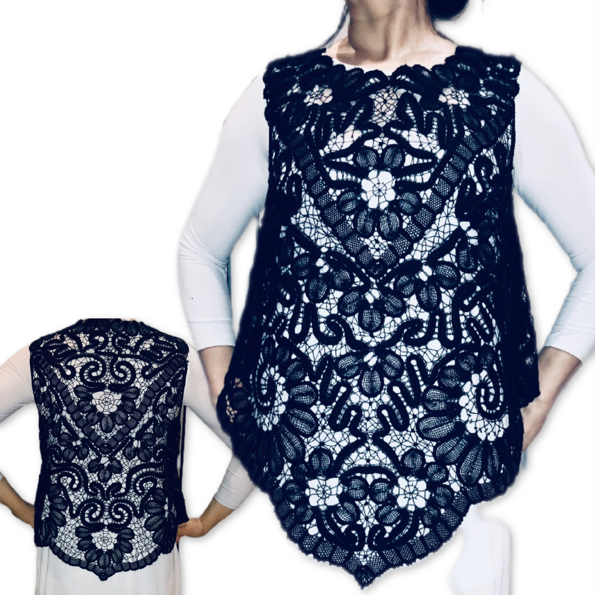 Накиньте на однотонное вечернее платье и готов новый наряд! Топ ажурный «Дюны» из кружева на коклюшках , черного цвета .Нежный и легкий подойдет для любого цвета платья.