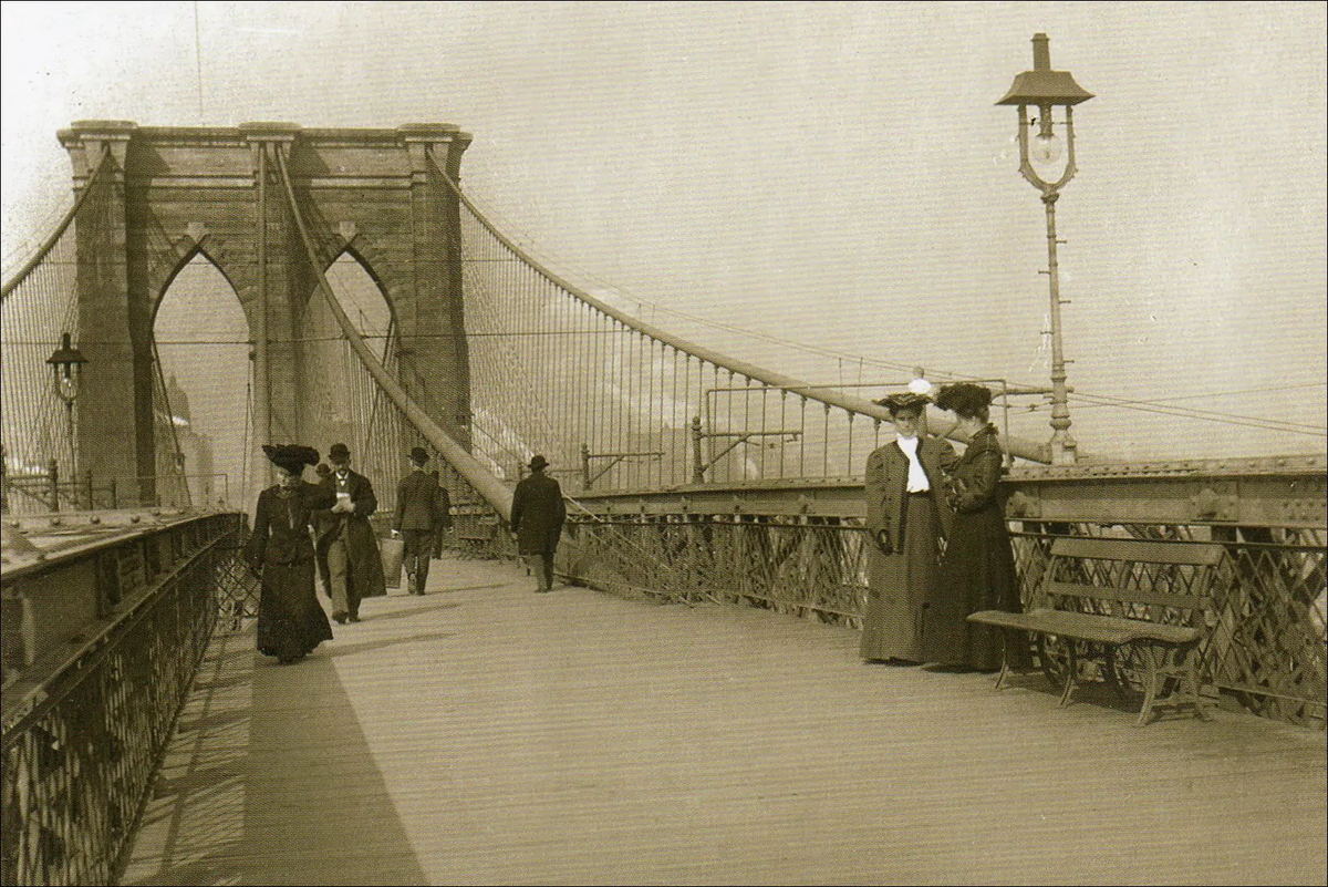 Бруклинский мост, некогда прозванный "Восьмым чудом света", и сегодня возвышается над Ист-Ривер как памятник инженерной мысли XIX века. Его строительство началось в 1869 году и продолжалось 14 лет, завершившись в 1883 году. На момент открытия это был самый длинный подвесной мост в мире с основным пролетом 486,3 метра и общей длиной 1825 метров.