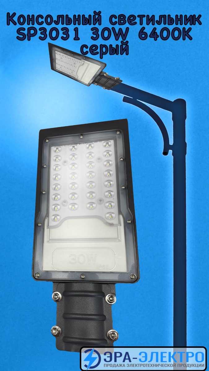 Светодиодный уличный консольный светильник Feron SP3031 30W 6400K 230V, серый 32576 https://era-elektro.ru/svetodiodnyj-ulichnyj-konsolnyj-svetilnik-feron-sp3031-3-6400k-230v-chernyj Данные светильники являются универсальным решением для применения в самых разнообразных сферах: от освещения придомовых территорий, подъездных аллей, садово-дачных хозяйств до автомагистралей регионального значения Корпус светильника из алюминиевого сплава, покрытого антикоррозийным покрытием. Рассеиватель изготовлен из светопрозрачного оптического поликарбоната. Каждый светодиод помещен в линзу, что дает равномерную засветку с углом рассеивания 120 градусов Высокая светоотдача 100 люм на ватт Срок службы 30000 часов Пульсация менее 5% Светильник не требует специального технического обслуживания, раз в несколько лет протереть влажной салфеткой по мере необходимости. Для подключения необходимо соединить коричневый фазовый провод (L), синий нейтральный провод (N), желто-зеленый провод защитного заземления св