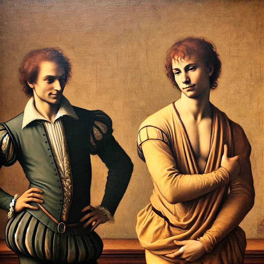 - Одежда и окружение. После Вашей мгновенной эмоциональной оценки включается уже когнитивная. Вы замечаете их одежду, прически. Становится понятно, что женщина одета богато, роскошно. А мужчина одет в рванную, поношенную одежду.