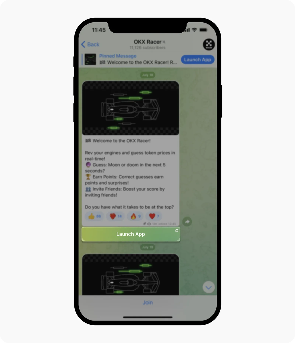 OKX Racer — это мини-приложение в Telegram, которое позволяет делать прогнозы о движении цены Bitcoin, нажимая на кнопки Moon (рост) или Doom (снижение). За правильный прогноз пользователь получает очки, а за несколько побед подряд очки умножаются. Для начала игры нужно просто открыть мини-приложение в Telegram. На главной странице приложения отобразится текущая цена Bitcoin. Пользователь может нажать зеленую или красную кнопку, чтобы сделать прогноз на рост или падение цены Bitcoin: 3. После нажатия одной из этих кнопок цифры начнут вращаться, и через 5 секунд отобразится результат. 4. Правильный прогноз принесет 10 очков. Шесть правильных прогнозов подряд добавят множитель к полученным очкам. Заработанные очки можно использовать следующим образом: Зарабатывайте на тапалках вместе со мной, подписывайтесь и ставьте лайки! Мой ТГ канал со всеми тапалками: https://t.me/foxxxestg
