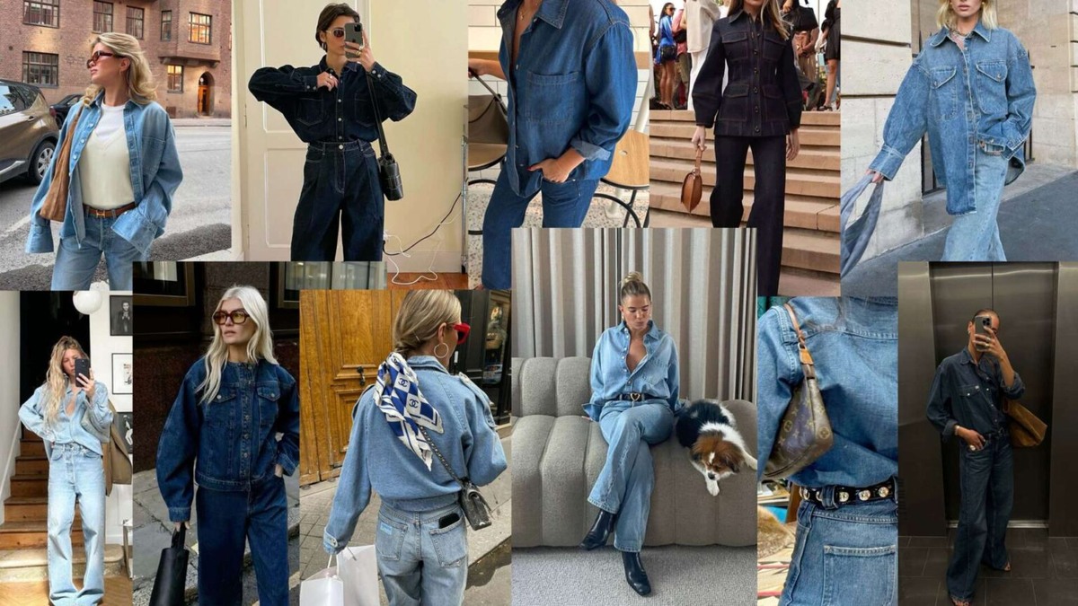 Double denim {как и золото + серебро в биколорном сете} больше не ошибка стиля, ведь он стал популярным благодаря простоте стилизации. Для всех новичков и модных любителей — это беспроигрышное попадание в тренд. Правила следующие: никаких правил. Сегодня игрой заправляет денимный шик и непринужденные комбинации. Ниже разберем несколько самых удачных из них. Для того, чтобы облегчить себе жизнь при выборе двойного денима, используйте правило similar shades. Сочетайте темные джинсы с темной джинсовой рубашкой или светлое на светлое. Такой концепт создает целостное и выдержанное ощущение образа. Готовые джинсовые комплекты станут неплохим решением для тех, кто не уверен в цветовой гамме. Чтобы деним на дениме выглядел современным, сбалансируйте свой силуэт. Если вы выбираете скини, накиньте свободную джинсовую куртку/бомбер. В качестве альтернативы, сочетайте широкие джинсы с более облегающим топом. Этот контраст пропорций придает динамики и делает образ интересным. Да и еще, это излюб