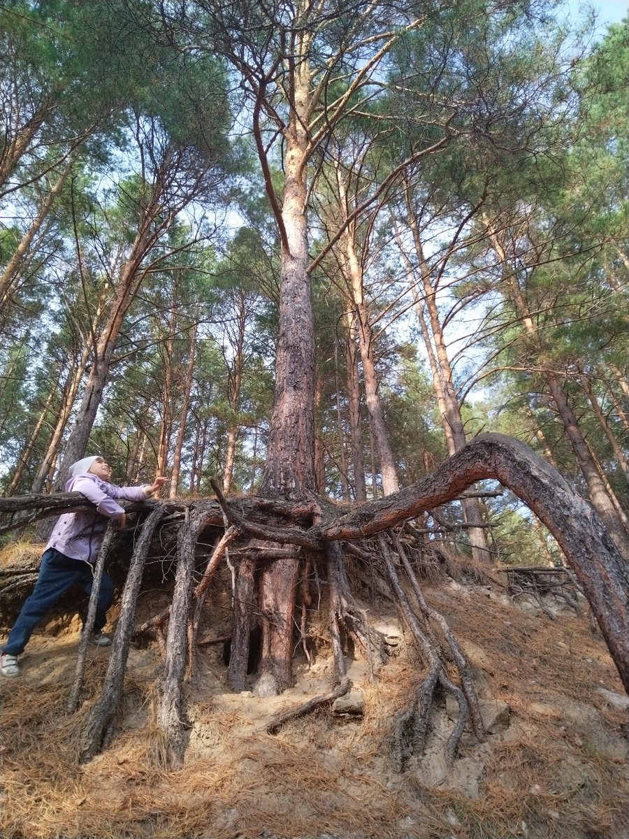 В детстве я очень любила сказки Вильгельма Гауфа. Особенно сказку "Холодное сердце", в которой было такое стихотворение: Под косматой елью, В темном подземелье, Где рождается родник, Меж корней живет старик. Он неслыханно богат, Он хранит заветный клад. Кто родился в день воскресный, Получает клад чудесный! Я родилась в воскресенье. Рядом с родительским домом находился магический лес. С чудесными соснами, имевшими богатые корни. Почти всё сходилось. Кроме родника. Но и его, весной, когда по лесу бежали ручьи, можно было себе представить. Я тщательно изучала все подходящие под описание сосны-ели. Нигде с уверенностью нельзя было диагностировать наличие подземелья. Но я продолжала верить в то, что где-то меня ждёт заветный клад. Мне лишь необходимо найти нужное дерево и встретить неслыханно богатого старика. Он облегченно вздохнет: "Ну, наконец-то ты пришла! Забирай, это твоё!", и протянет мне сокровище. Пошли сегодня гулять с Дариной по лесу. И вот, они, стоят любимы