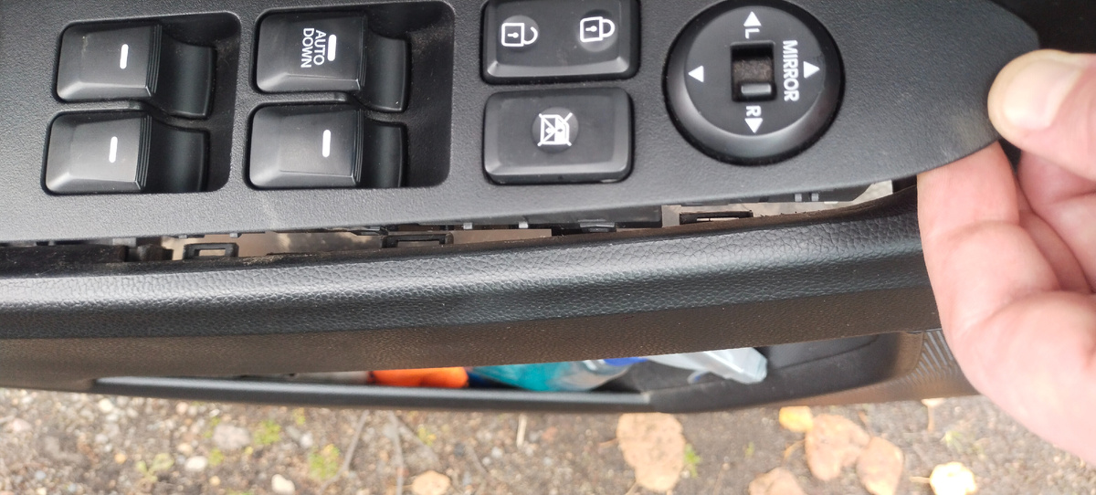 Прежде всего я снял обшивку двери, а потом и сам блок. Дело в том, что я хотел отыскать и решить проблему сам. Но, чуть чуть не добравшись до проблемы, сдался и понес блок автоэлектрику. Хотя, как выяснилось, решить проблему мог бы и сам, как и вы в том числе. Не бойтесь действовать самостоятельно , это гораздо интереснее ! Нужно было просто снять ещё кнопки с блока и добраться до контактов. Зачистить их и вернуть всё на место.