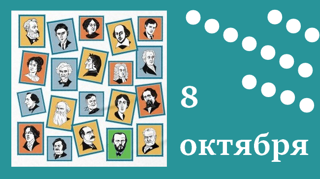 120 лет со дня смерти русского писателя, поэта Константина Константиновича Случевского (1837-1904) 75 лет со дня рождения российского писателя Александра Николаевича Арцибашева (1949-2014) 65 лет со дня рождения российской писательницы, литературоведа Натальи Александровны Громовой (1959) 60 лет со дня рождения немецкого писателя Якоба Аржуни (Jakob Arjouni, 1964-2013) русская поэтесса Марина Ивановна Цветаева (1892-1941) американский писатель Фрэнк Герберт (Franklin Patrick Herbert, 1920-1986) русский писатель Иван Сергеевич Аксаков (1823-1886) русский писатель Андрей Донатович Синявский (псевдоним — Абрам Терц, 1925-1997) советский писатель Юлиан Семёнович Семёнов (настоящая фамилия —Ляндрес; 1931-1993) российский писатель Эдуард Владимирович Тополь (настоящее имя — Эдмон Хаимович Топельберг; 1938) немецкая писательница Керстин Гир (Kerstin Gier; 1966) российская писательница Яна Михайловна Вагнер (1973) российская писательница Маша Трауб (настоящее имя — Мария Киселёва, в замужес