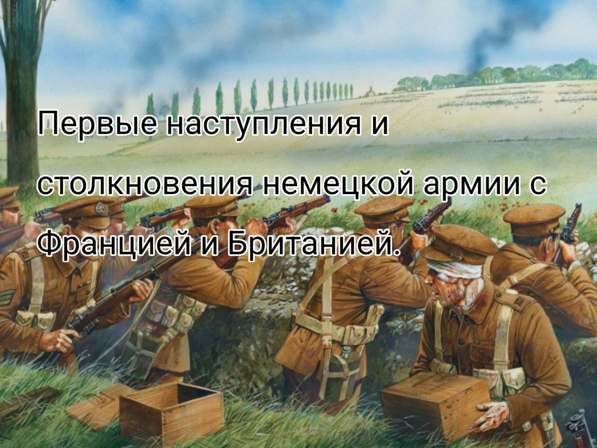 Британские экспедиционные силы высаживаются во Франции, пока в критические дни германское вторжение сдерживается сопротивлением бельгийцев в городе-крепости Льеж. Немецкие войска совершают несколько массовых убийств бельгийских мирных жителей. Зверство раздувается пропагандой союзников и помогают настроить общественное мнение в нейтральных странах против Германии. Франция не зная о крупной окружающей атаке приступает к реализации плана 17, наступления на немецкую территорию. Но в битве на границе они отброшены назад с огромными потерями с обеих сторон Французские потери: 329,000 человек. Немецкие потери: 256,000 человек. Британские экспедиционные силы сталкиваются с немецкой армией при Монсе. Но британцы сильно уступали числом и вскоре присоединились к отступающим французам. Союзники занимают позицию у реки Марна в 65 километрах от Парижа. Их отчаянная контор атака спасает город и отбрасывает немцев назад. Обе стороны понесли потери в четверть миллиона человек. Начинается бег к морю,