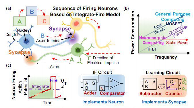 (Результаты: алгоритмы и роботы. «ХиЖ» 2024 №9) По некоторым характеристикам компьютеры превосходят человеческий мозг, но они несравнимы с ним по кпд. Например, для обработки и распознавания изображений самым лучшим из них нужно в 10 тысяч раз больше энергии. Инженеры постоянно уменьшают размеры транзисторов и увеличивают их плотность на рабочих платах, однако потребление электроникой энергии с каждым годом растет в геометрической прогрессии. Ученые разрабатывают нейроморфные компьютеры, которые имитируют структуру и работу человеческого мозга. В них обработка информации происходит с меньшим энергопотреблением. Она распределена по всему массиву транзисторов, а память и процессор совмещены. Крупные компании уже создали свои электронные платформы для ИИ из миллиардов взаимосвязанных транзисторов, которые экономят энергию. Но и в таких системах ее заметная часть теряется через токи утечки. Это происходит в неактивном состоянии, когда транзисторы выключены, но компьютер подключен к питанию