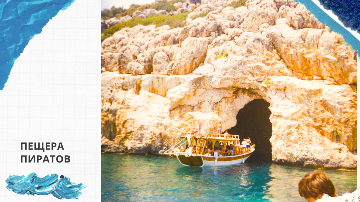 Вторая наша с братом поездка на экскурсию в Кемере больше походила на то, что называют экскурсией: мы поехали на развалины. Но отправились туда на лодке. Точнее, сначала, на автобусе нас привезли в порт. Там мы загрузились в лодку и поплыли вдоль береговой линии острова Кекова, где под водой рассматривали всякие античные развалины: стены, лестницы, кувшины, колонны, статуи и др. Нам показали пещеру, где когда-то, якобы, прятались пираты. Потом была остановка для обеда и купания с лодки в потрясающе красивой и прозрачной воде.