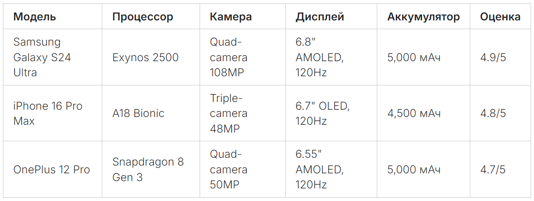 Как видите, ведущие производители представили множество интересных новинок. Каждая из них имеет свои уникальные преимущества. Сравнивая их, вы найдете идеальный смартфон для себя.
