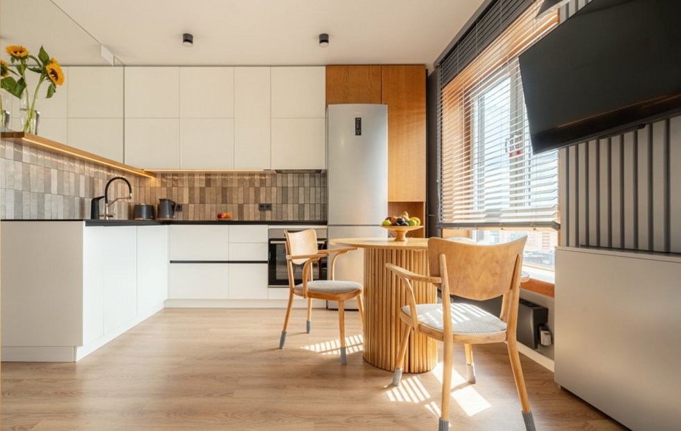 В этой малогабаритной однушке нашлось место не только для кухни-гостиной, но и для спальни, отдельной гардеробной и рабочей зоны Тип дома: Новостройка Метраж: 31 кв. м Комнаты: 1 Cанузлы: 1 Высота потолков: 2,5 м Бюджет: 2,6 млн рублей Дизайн: Полина Дадыко Эту небольшую студию в подмосковных Люберцах обустроила дизайнер Полина Дадыко. Заказчица, молодая девушка, увидела на канале INMYROOM обзор маленькой студии, которую оформила Полина, и решила доверить ей передку своей квартиры. Изначально это была студия с чистовой отделкой от застройщика. Ее частично изменили — кое-где перекрасили стены, добавили световые сценарии и удобные розетки. За основу взяли скандинавский стиль с элементами джапанди. В квартире есть прихожая, кухня-гостиная-спальня, гардеробная, совмещенный санузел. Все мокрые зоны оставили на своих местах, но конфигурацию кухни поменяли и добавили несколько розеток. В угловом гарнитуре достаточно мест для хранения и предусмотрена вся необходимая современная техника. Верхни