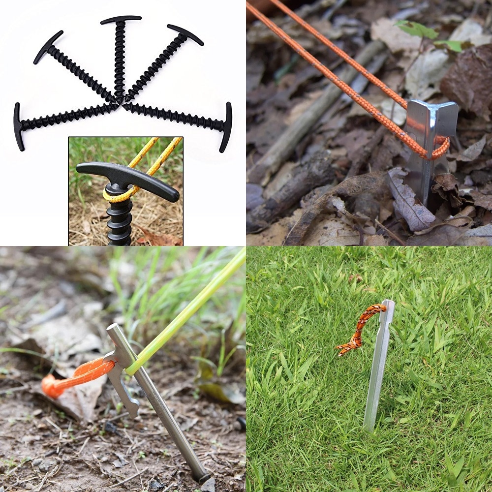 Когда мы начинали, то использовали колышки из ивы или любого кустарника, что растет поблизости, пошел вырубил и вбил, ни каких проблем. Но потом я попросил друга сделать мне колышки из арматуры, ну он изготовил шесть штук, вот много лет мы их возим, те что делал я сам, они давно потеряны, а эти я берегу, Шесть штук берем редко, четыре тяжеленных колышка с собой и два оставляю в гараже. Мы везде ездим на машине и вес кольев нас мало волнует. Я делал колышки из дюралевого уголка, не такие как продают в магазинах, а из нормального, но понадобились полки и я их пустил в дело, да и не понравились они. Огромные строительные шурупы, не знаю как они правильно называются, они куда лучше, их можно легко вбить в любой грунт, они хорошо держат на песчаном берегу, если выкопать ямку и забивать где песочек влажный. А те колышки, что продают в магазине, ну это не серьезно как-то, первый хороший ветер и покупные колья будут вырваны. Если придется идти пешком, то я все равно колышки лучше вырежу из п