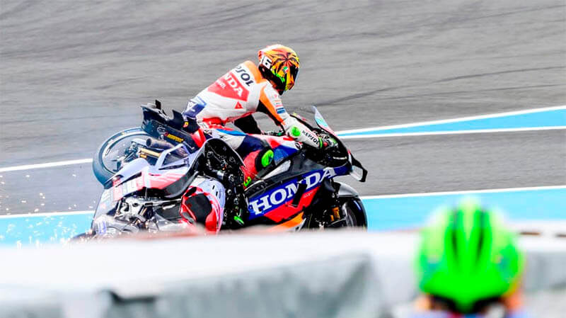 На первом круге гонки произошло столкновение между испанскими гонщиками Moto GP Алексом Маркесом и Жоаном Миром: только после того, как Мир взбесился, пилот «Gresini» был наказан за жесткий маневр. Гонщик «Gresini-Ducati» Алекс Маркес был десятым на стартовой решетке, сразу за своим старшим, отмеченным множеством наград братом Марком. У заводского гонщика «Honda» Жоана Мира в квалификации дела шли не так хорошо. Жоан стартовал с 17-го места на Гран-при Японии. В то время как Мир хорошо тронулся с линии, Алекс Маркес запоздал. В 11-м повороте, крутой правый поворот, ведущий обратно к финишной прямой, Маркес вошел очень широко, а Мир протиснулся мимо. Через несколько секунд гонка для двух испанцев закончилась досрочно. Мир описал ситуацию: «После обгона Алекса в 11-м повороте я был прямо в середине 12-го поворота, когда меня сильно ударили сзади. Алекс въехал так, что его байк застрял между в моем мотоцикле! Это было невероятно, и я оказался в гравии!». Но это было только тогда, когда на