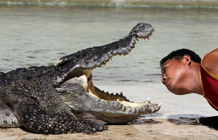 Шон Фьюмара, отправился с клиентами порыбачить на реку Вулен. В какой-то момент из воды выпрыгнул огромный крокодил. Мужчина стоял в полный рост, когда агрессивная рептилия вцепилась ему в колено, сбросила с лодки и утащила на глубину. «Только оказавшись под водой я понял, что происходит. Этот ублюдок добрался до меня», — рассказал Фьюмара. Он быстро сориентировался, сунул левую руку в пасть крокодилу, а правой схватил его за рыло сверху и сумел освободиться. Схватка, по словам рыбака, продолжалась около 30 секунд. Рептилия не спешила расставаться с добычей и бросилась в атаку снова. Однако в этот момент Фьюмаре помог забраться в лодку клиент. Пострадавший заявил, что крокодил был в нескольких сантиметрах от него. Он также обратился к австралийским рыбакам и напомнил, что гребнистые крокодилы «умеют прыгать и будут это делать, если увидят возможность поесть».