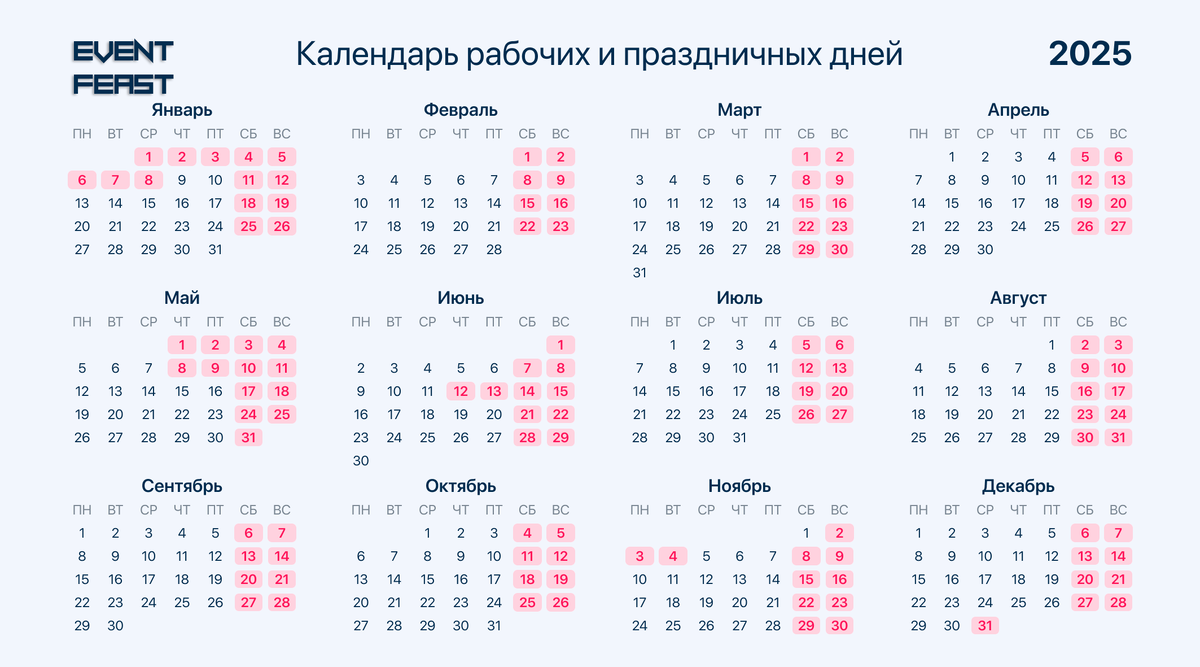 Как обычно, начало года в России традиционно отмечается длительными новогодними каникулами. С 1 по 8 января — это время, когда вся страна погружается в атмосферу праздника и зимнего волшебства. Новогодние праздники являются одними из самых ожидаемых, так как это возможность для большинства людей отдохнуть после напряженного декабрьского периода, а также провести время с семьей и друзьями.