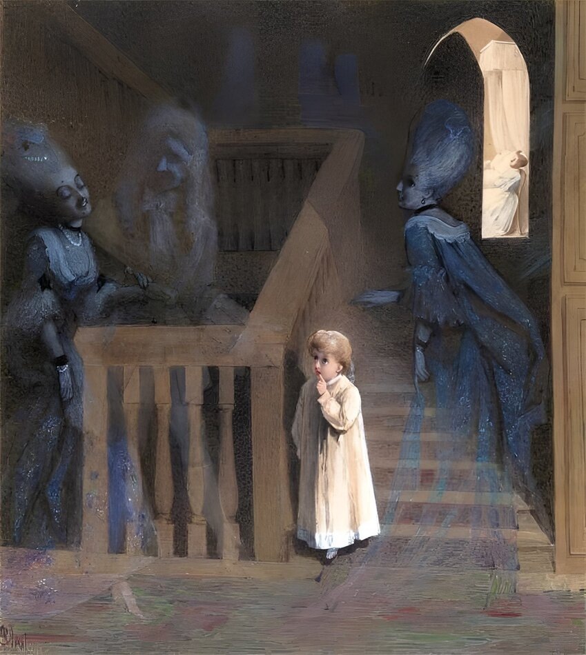 Иллюстрация "Вечеринка на лестнице", художник Аделаида Клэкстон