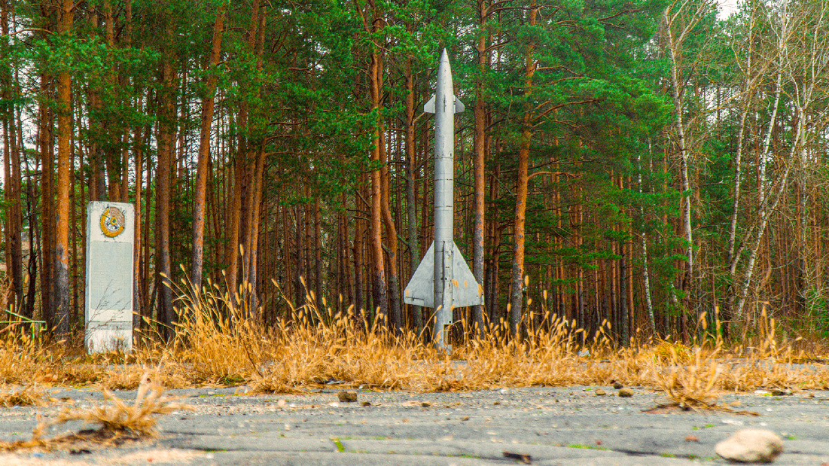 Дальше я сразу попадаю на плац, с макетом ракеты и остатками трибун для командования и почетных гостей.