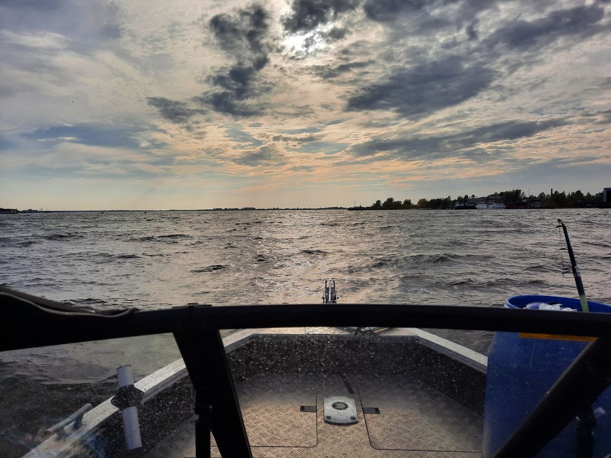 После обеда с ребятами меняем сентябрьскую духоту города на прохладу Двины, выезжаем на большую реку, по плану что-то поймать в какой-нибудь из многочисленных проток, под шуточки и приколы. Уходим влево в протоку и почти сразу принимаем решение, троллинг - для лохов, спиннинг - для пацанов. Достаю свой китайский ультрик, ставлю вертушку и провожу вдоль травы, поклевки не ставили себя долго ждать. Хороший стайный окунь гоняет мелочь. Берет жадно, головой мотает агрессивно, палку загибает в дугу, эмоций море. Парни свои троллинговые палки пускают в ход, также вооружившись вертушками, тоже ловят с азартом полосатого. Хорошее местечко нашли, только и раздается: "Алексей, точку на карте поставь!" Место и правда удачное, травка и мель, ямка и обратка - все присутствует. Жаль времени мало, темнеет стремительно, ищем место для ночлега. Тепло, хоть и осенний вечер. Пристаем к берегу, бросаем якорь. Впереди целая летняя ночь разговоров, насмешек, повтора одних и тех же историй о похождении бр