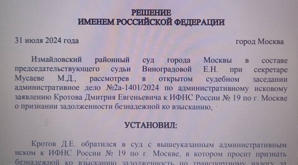 В этой статье поговорим о налогах для физических лиц. Сразу скажу, что я никого не призываю не платить налоги и лично я убежден, что мы как граждане нашего государства имеем не только права, но и обязанности, которые обязаны исполнять. И название статьи просто для "красного словца". К сожалению, так бывает, что по разным причинам нам не всегда удается вовремя исполнять свои гражданские обязанности. Но наши личные жизненные обстоятельства законом не предусмотрены. Закон один для всех- как мы знаем. И так случилось со мной. В 19г. я не оплатил транспортный налог, про который даже и не помнил в последующие годы. Я не плачу, налоговая взыскать денежные средства в принудительном порядке с меня не может, а задолженность никуда не девается. Так и висит на мне)) В этой патовой ситуации законом предусмотрено признание задолженности безнадежной к взысканию и ее списание. Но признать ее таковой может только суд. Я не корысти ради, а в силу моей профессии пишу иск в суд. Как обычно у меня это б