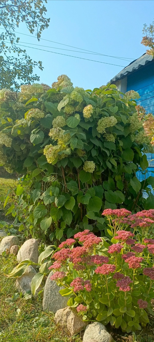 Красивое сочетание, гортензия и очиток