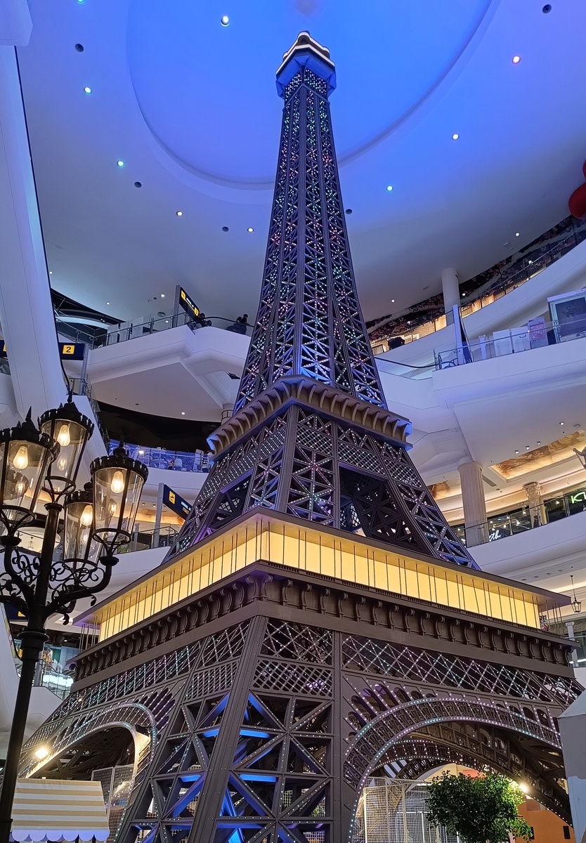 Выполнен в стиле терминала аэропорта Этажи оформлены с использованием достопримечательностей различных городов мира: Париж, Сан-Франциско, Рим, Лондон и т.д. (идеей похож на ТЦ Европейски в Москве). Эскалаторы выполнены в стиле ворот прилёта/вылета. Внутри огромное множество различных магазинчиков, как известных мировых брендов, так и местных; открытые торговые ряды на которых устраивают различные ярмарки: вещевые, продуктовые, гастрономические и просто распродажи.