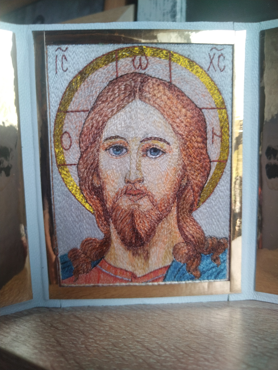 Вышитые вручную иконы. 1. Господь Вседержитель, ручная работа священника Валентина (Колосова). 2. Святитель Спиридон Тримифунтский, ручная работа священника Валентина (Колосова). 3. Благоверные Пётр и Феврония Муромские чудотворцы, ручная работа дочери Серафимы (Дмитриевой). 4. Богоматерь с Младенцем ( без названия), ручная работа Серафимы (Дмитриевой). 5. Богоматерь «Егорьевская», ручная ручная работа Серафимы (Дмитриевой). Все данные иконы-складни есть в наличии. По вопросам приобретения или заказа иных икон, пишите пожалуйста по номеру:☎️ Благодарю за внимание! 🍁🤗 #ЗапискиматушкиАнны #Вышитыевручнуюиконы #Подаркиручнойработы